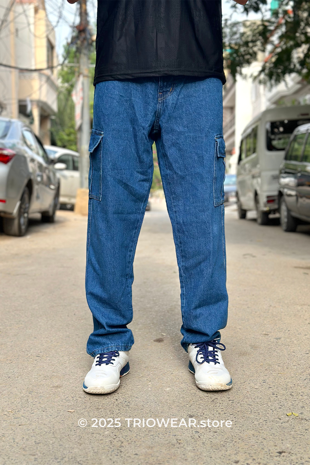 Bring effortless style to your wardrobe with the Light Blue Baggy Cargo Jeans. Featuring a relaxed, oversized fit with spacious side cargo pockets, these jeans are designed for all-day comfort and a bold streetwear look. The light blue wash adds a fresh and versatile vibe, making them easy to pair with t-shirts, hoodies, or sneakers for a perfect casual outfit.